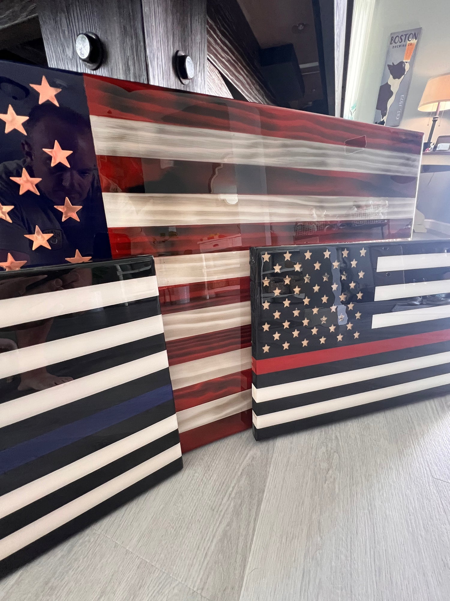 Veteran owned and operated small business specializing in custom hand made wooden flags, inlay cutting boards, epoxy charcuterie boards coasters and CNC products.